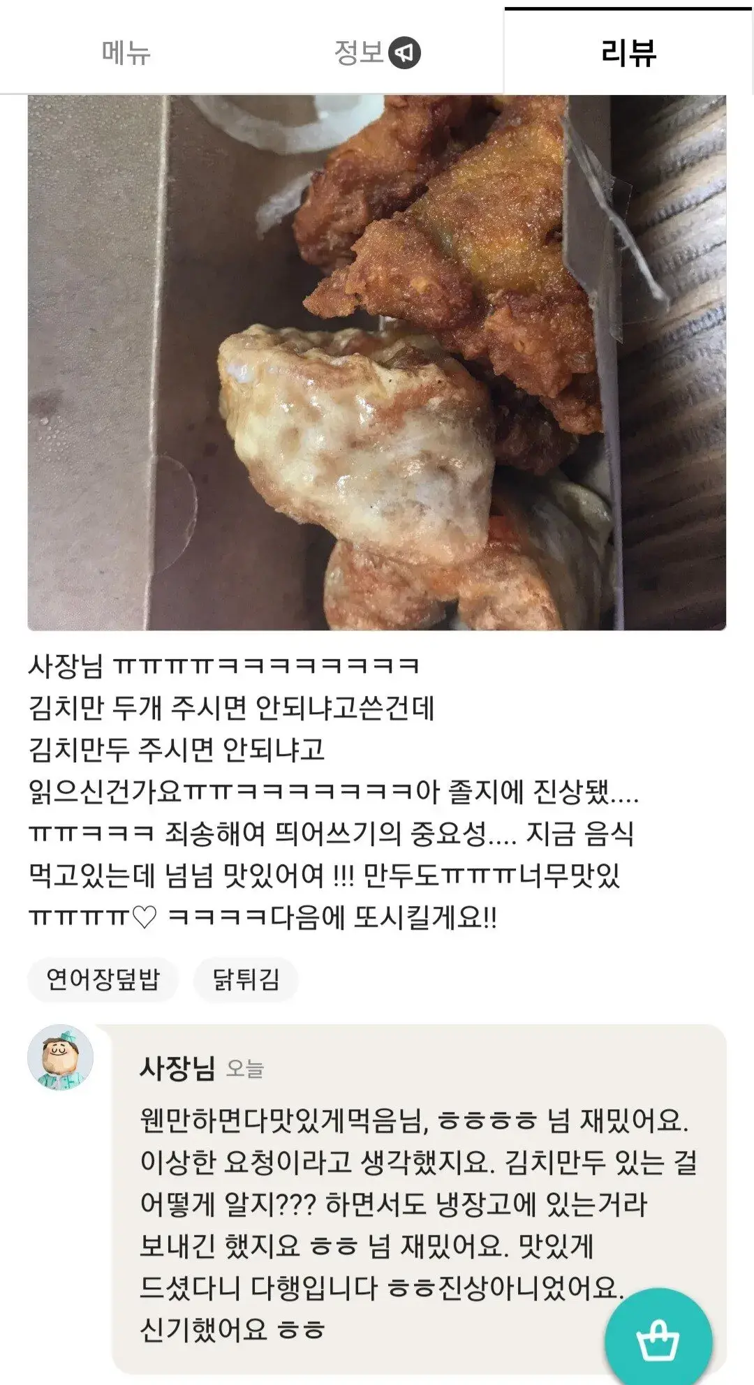 - 요청: 김치만두 개주시면 안되요? 답: 개줬습니다. // 이게 정상 아니냐??