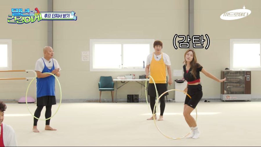 말년을 건강하게 신수지쌤한테 리듬체조 배우는중 후프 돌리면서 달리기 한번에 성공 ㅋㅋ