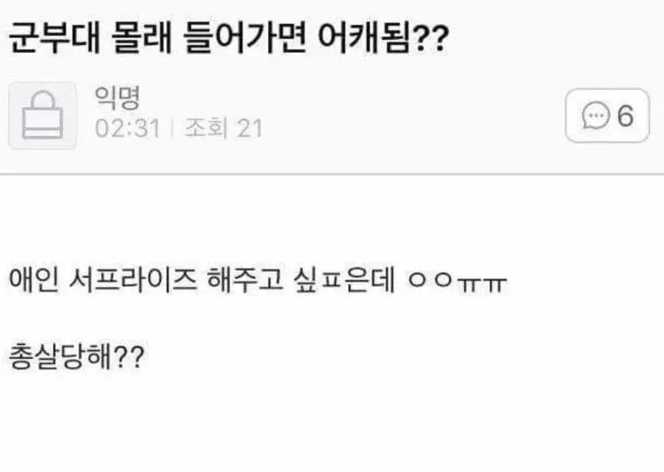남친 보러 군부대 몰래 들어가면 어캐됨??