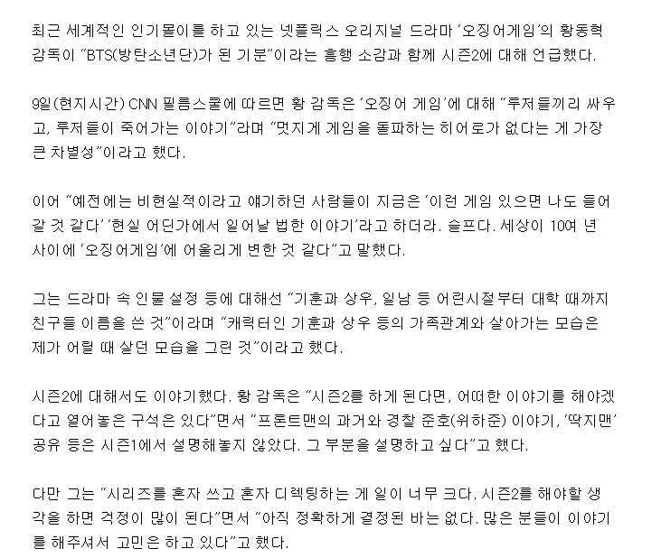 황동혁 감독 오징어 게임 시즌 2 예고 ㄷㄷ..JPG