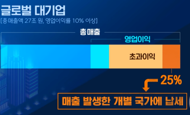 -전세계에서 올린 영업이익 중 일부에 대해 실제 매출이 발생한 개별국가에 세금을 내도록 하며, 매출액 1조원 이상의 다국적 기업은 어느 나라에 나눠서 내든 최소 15%의 세금은 내야함.