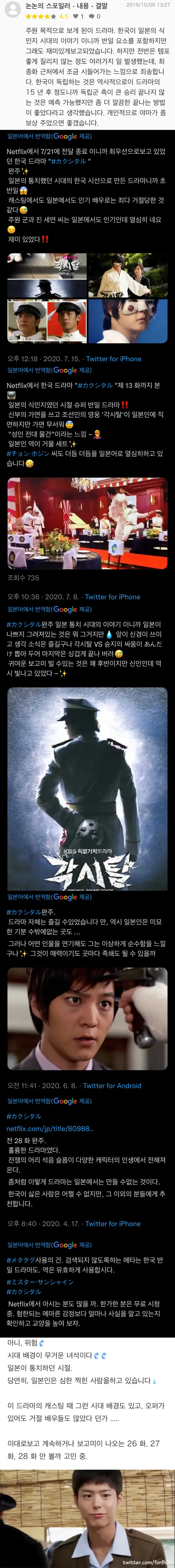 일본 넷플릭스에 올라온 각시탈 반응