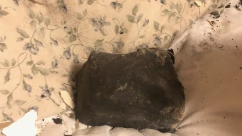 검은 돌 하나가 집 천장을 뚫고 그녀의 침대에 떨어진 것이다.