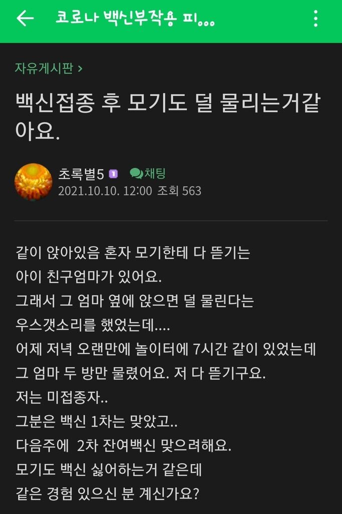 모기가 덜 무는 이유는 10월이기 때문입니다. (끄덕)