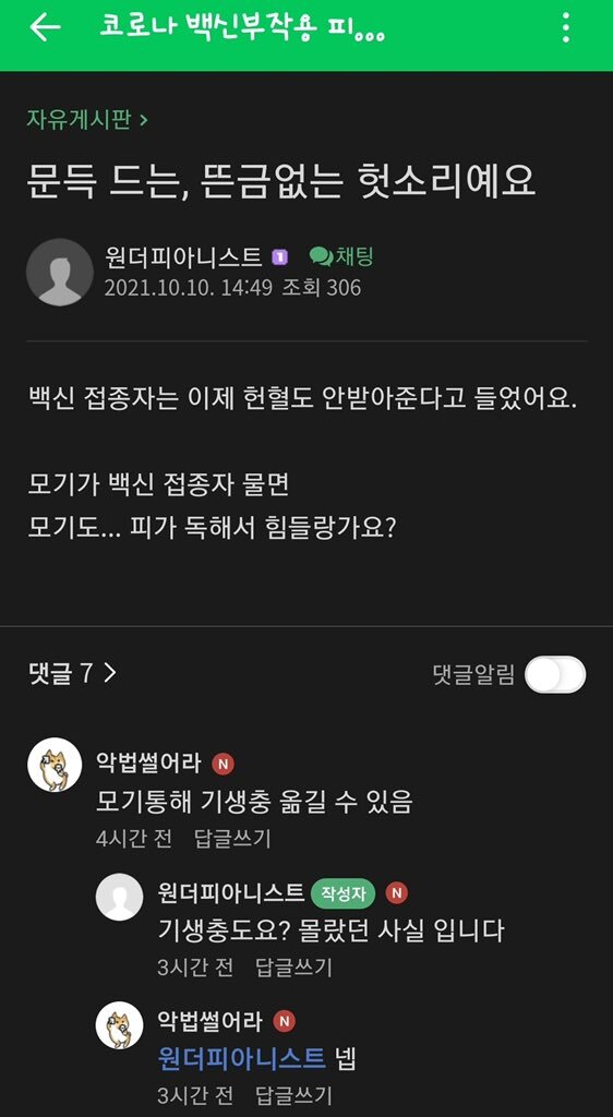 먼 이상한 단어 만들어서 접종하면 이상해진다는 의견 표출시도중 지능 딸리는데 어떻게 살아가는거냐 대체?