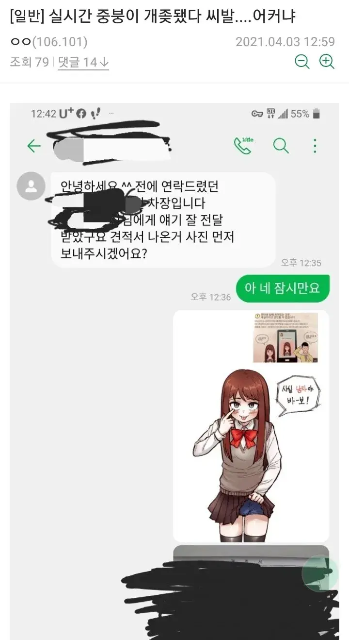 거래처에 문자 잘못보낸 중붕이 대참사.jpg