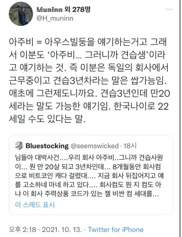 └ 베를린에서 거주하는 사람으로 추정되는데, 거긴 학생 때부터 연계 취업해서 완전 주작은 아님... 배만져야 돼