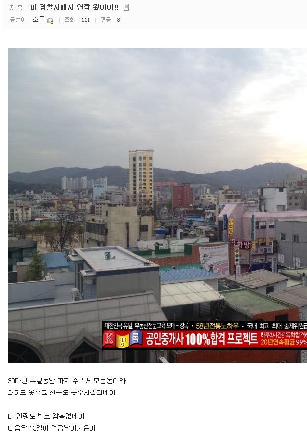 - 모은 돈이라 한푼도 못준다보다 고맙다는 말이 먼저였으면 좋앗을텐데