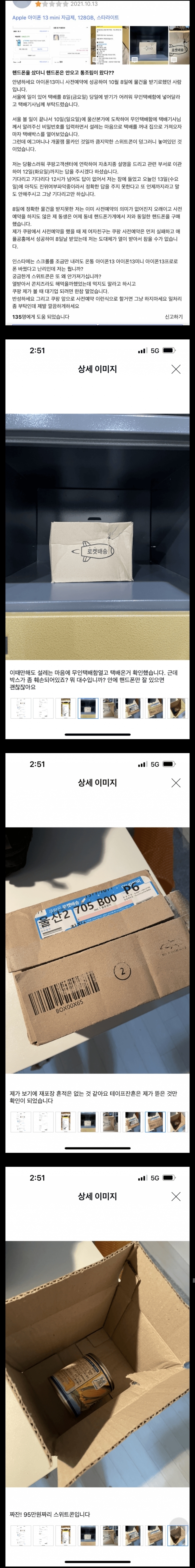 - 쿠팡 로켓배송은 물류센터에서 알바가 포장해서 보내는데 거기서 알바가 바꿔치기 하는 경우가 왕왕 있음