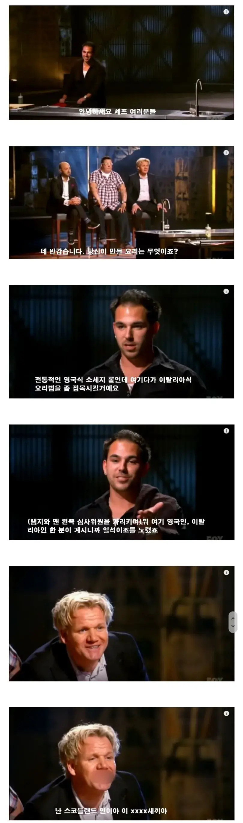 - 저래 놓고 음식은 또 엄청 맛있게 함, 램지가 시식용 음식 한 그릇 다 먹는 바람에 다른 심사위원들은 잘라 놓은 옆부분 짜투리 먹음ㅋㅋㅋㅋㅋㅋㅋㅋ