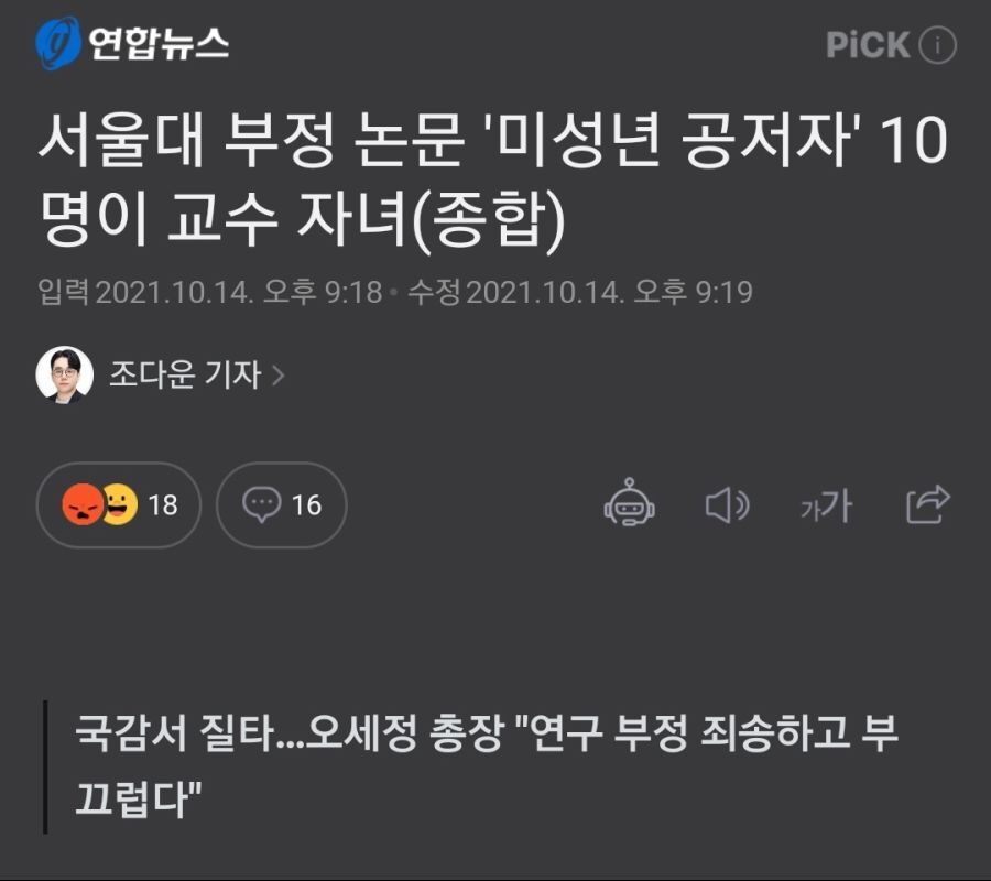 서울대 부정 논문 '미성년 공저자' 10명이 교수 자녀