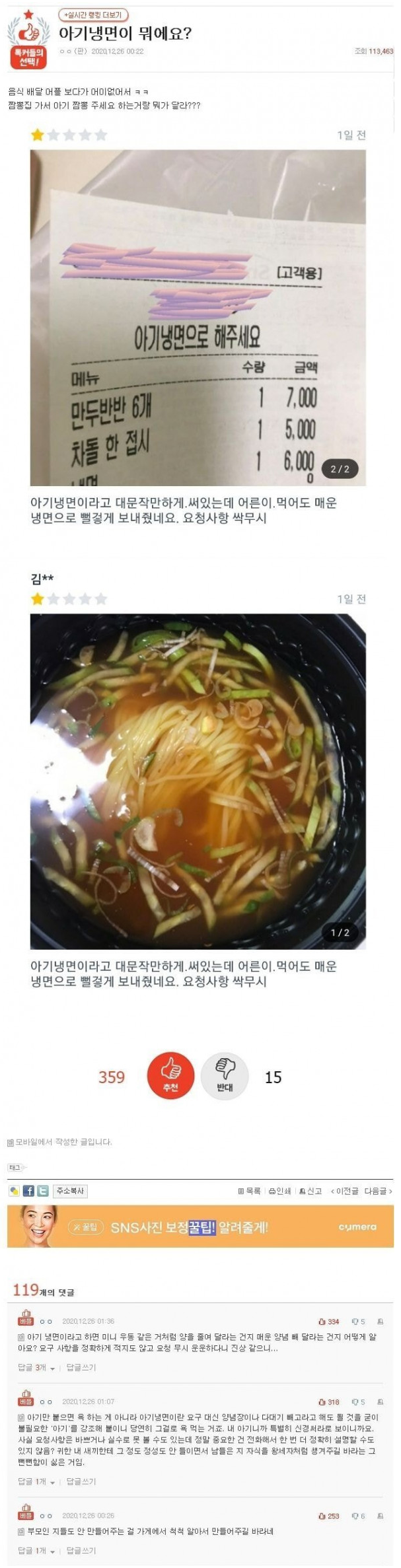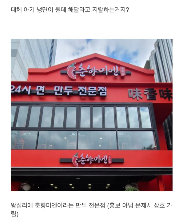 유게에서도 자주 올라왔던 배달진상 목록중 하나인 응애 나 애기냉면 올라오는 족족 리뷰남긴사람에 대한 욕과 함께 자영업이 이렇게 힘듭니다 하는 댓글이 달리는 짤중 하난데