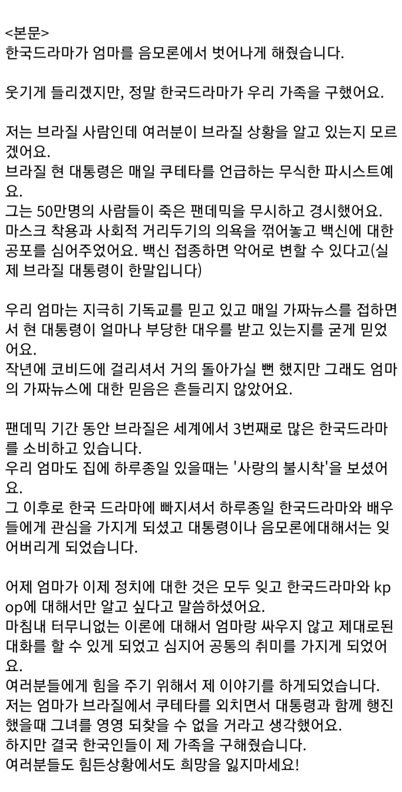 한류가 엄마를 구했어요