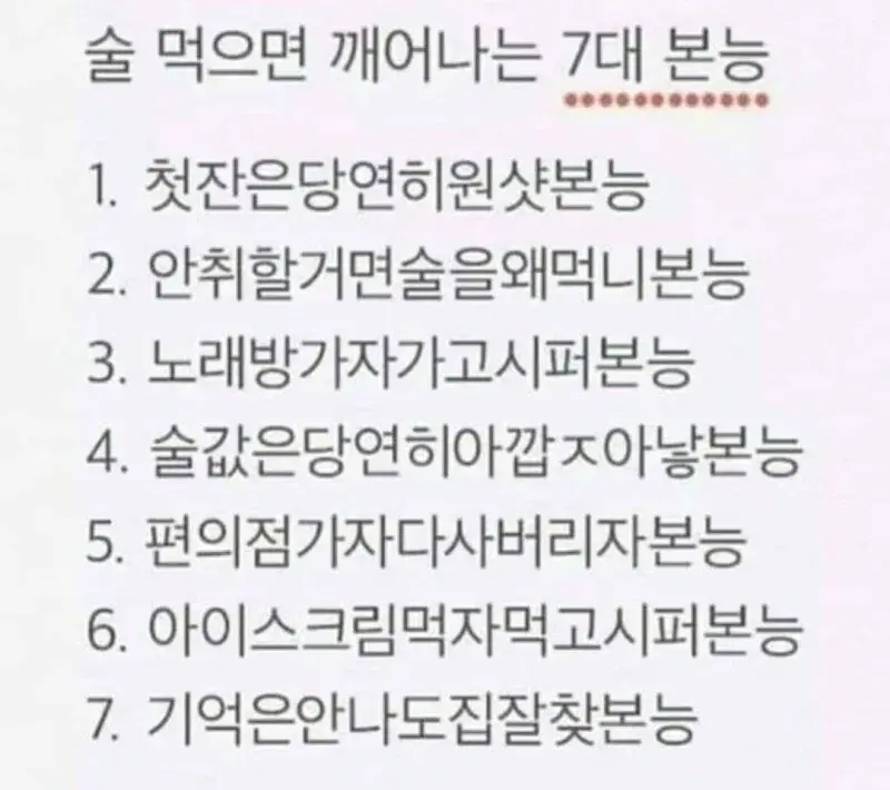 술 먹으면 깨어나는 7대 본능