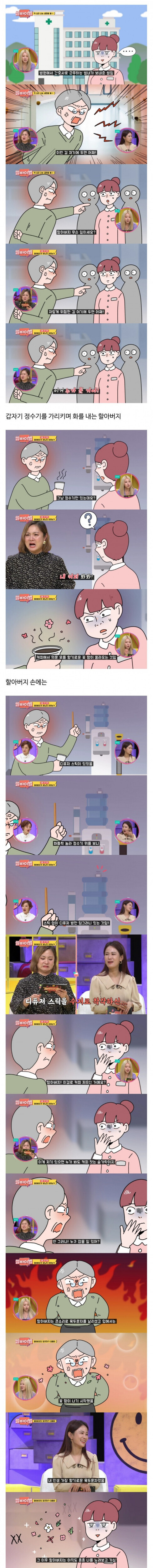 할아버지 : 이걸 왜 정수기 위에 올려놔!