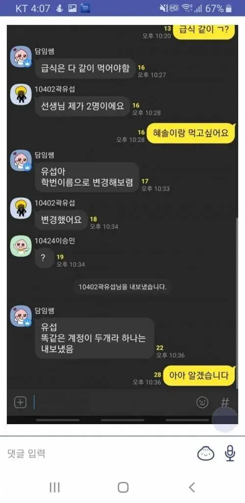중딩 단톡방에 잠입한 야갤러