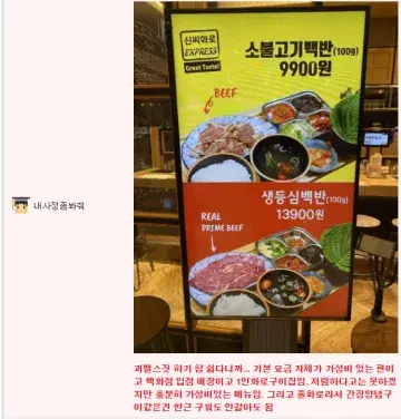 - 원래 음식이 완성된 상태로 나와되는데 굽는건 우리가 굽는거잖아. 불판갈기 싫으면 자기가 굽고 옮기던가. 저리 나오면 음식만드는 인권비는 가격에서 깍아줘아 되는거 아니냐?