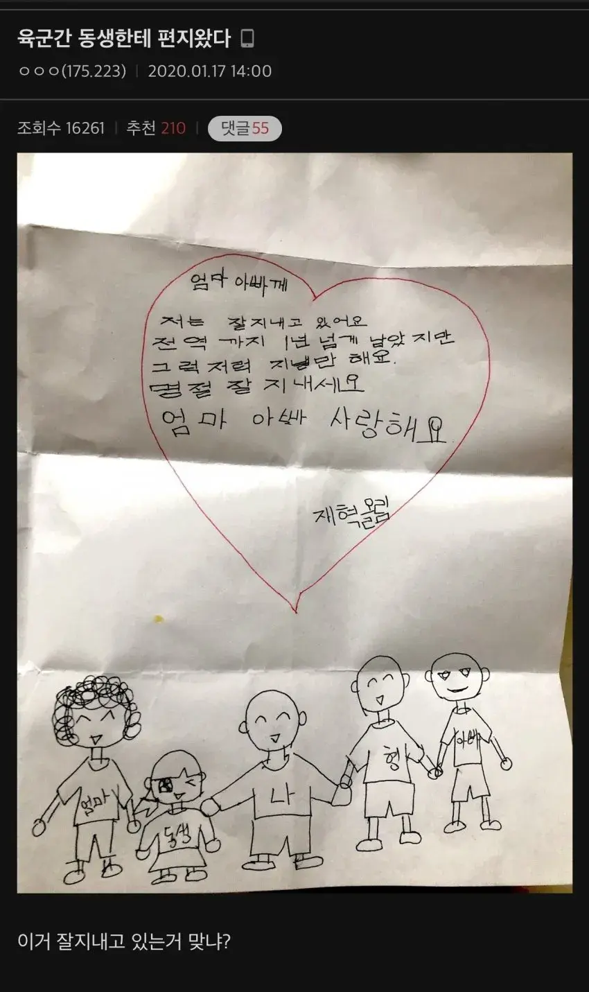 육군간 동생한테 편지왔다