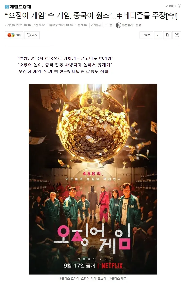 오징어게임 건드리기 시작한 중국