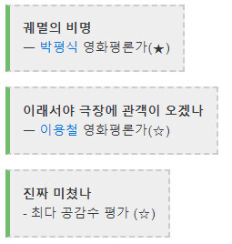 개봉후 2주도 못버티고 퇴거수순 클레멘타인의 재림과 배우들의 커리어가 걱정되는 수준. ???