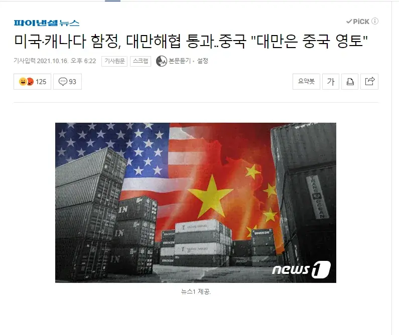 어제자로 미국, 케나다 함정이 대만해협으로 도착함