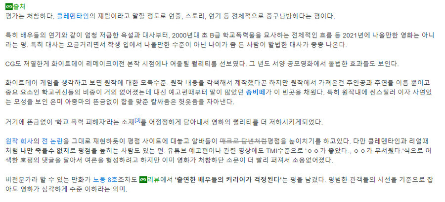 그리고 VIP 연기가 구리다는건 더빙 자막 공통된 의견이긴한데