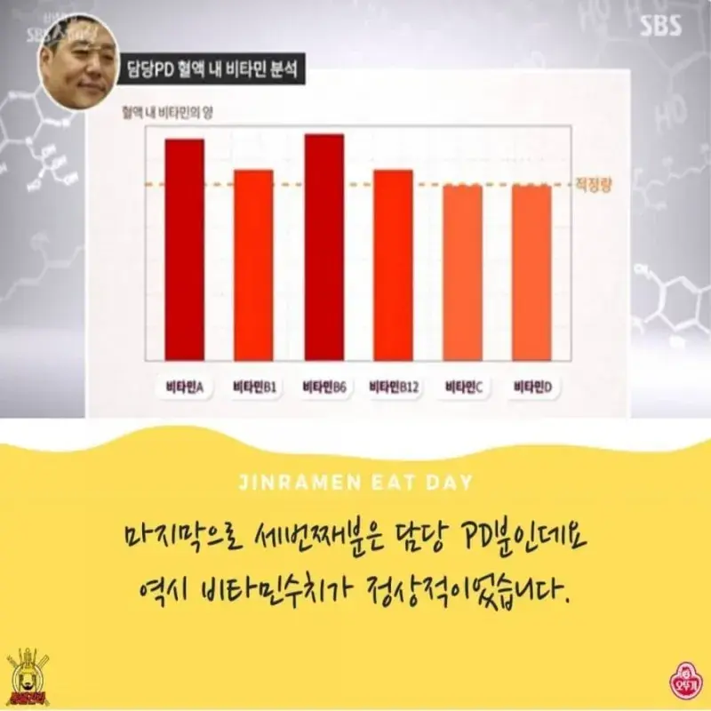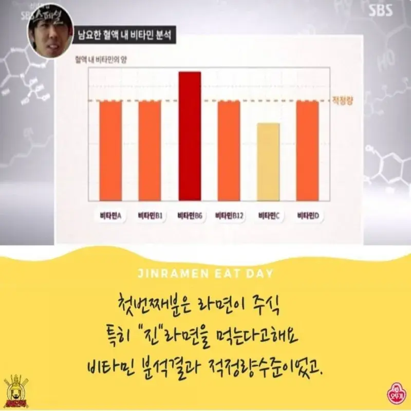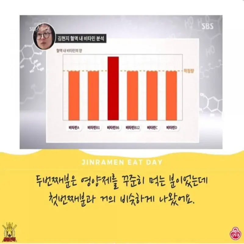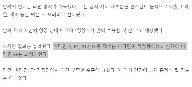 라면만 먹은 사람 체내 영양소와 비타민 꾸준히 먹는 사람의 체내 영양소 차이가 생각보다 크지 않음 ㄷㄷ