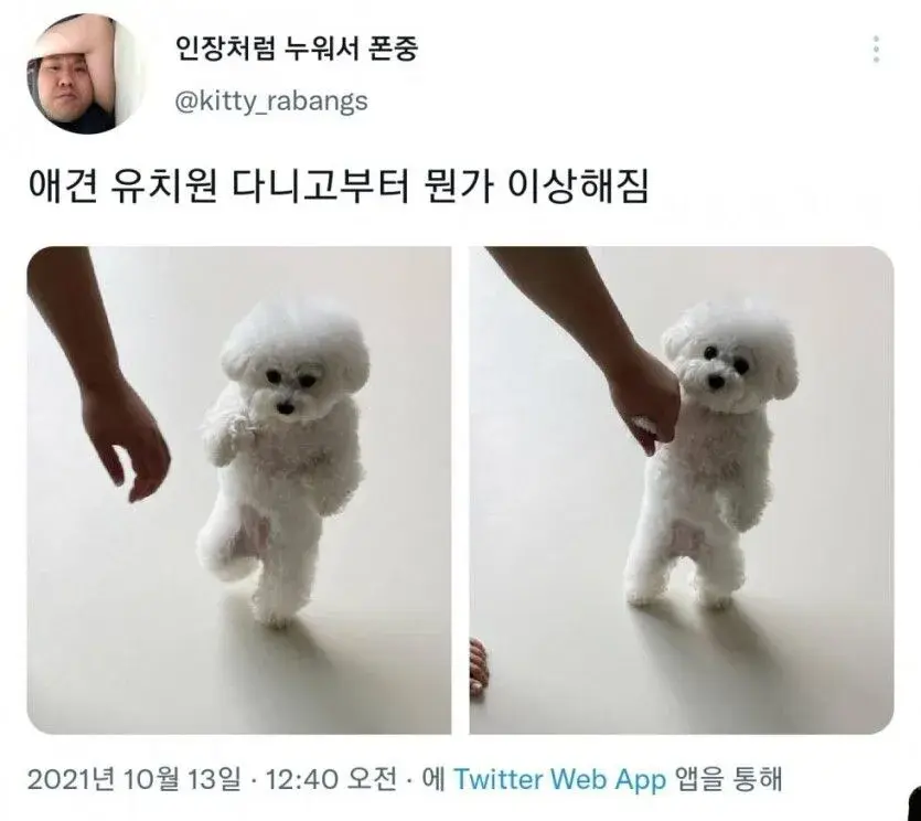 - 강아지유치원 가면 자기들끼리 어울리고 사회화하면서 이상한거 배워오고 그런다던데 ㅋㅋㅋㅋ진짜 사람이랑 똑같더라