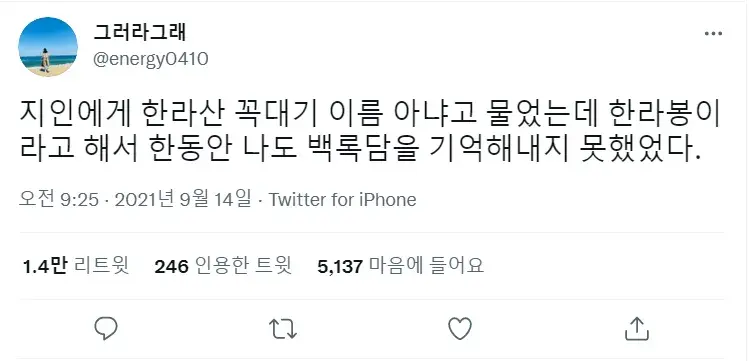 한라산 정상이름이 뭐더라?