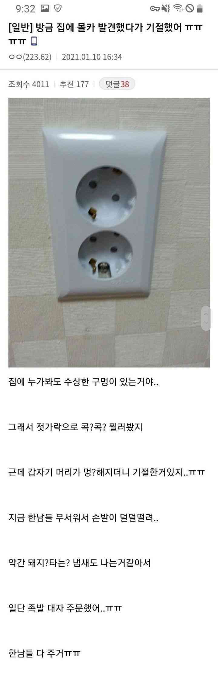 방금 집에서 몰카 발견했다가 기절했어 ㅠㅠ