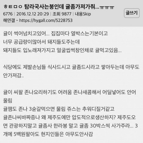 - 진짜 제주도에서 귤을 사먹는 사람은 둘중 하나임 1. 이사온지 하루도 안될만큼 주변과 왕래할 시간이 없었음 2. 인간 관계를 조져서 주변에서 사람 취급 안해줌