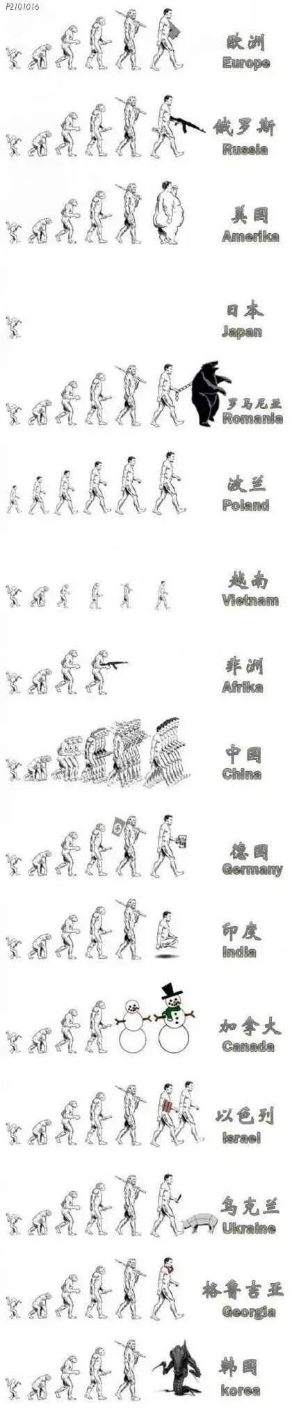 각 국가별 인류의 진화과정