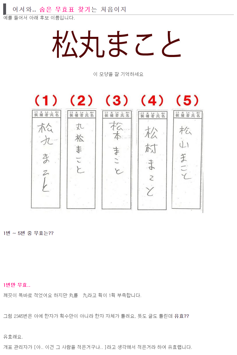 - 한국도 투표할때 박스에 걸치게 쓰거나 애매한 것들 미분류로 모아서, 어떻게든 유효표로 만들려고 융통성은 가짐. 어떻게든 무효표 안만들려고 하는건 나쁜 건 아니고 모든 나라가 다 함. 문제는 저기서 개표원의 자의가 지나치게 많이 개입됨. 맘만 먹으면 전부 유효표로 때릴수도 있고 전부 무효표, 아니면 전부 안분표로 때려도 할말 없다는거.