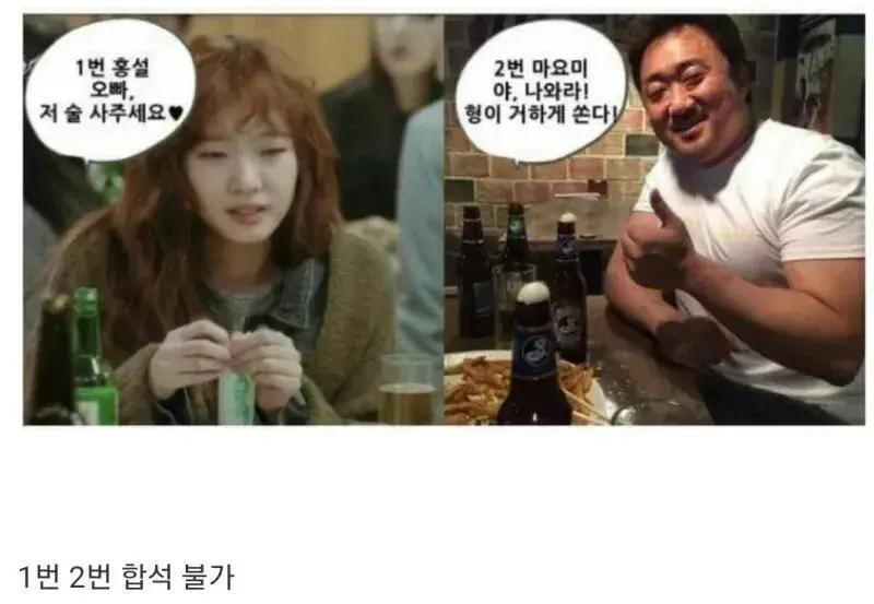 - 윗댓들 전부 다 2번이네. 그럼 내가 1번 갈게. 님들은 진자진자 재밌는 행님이랑 술 마시셈!!
