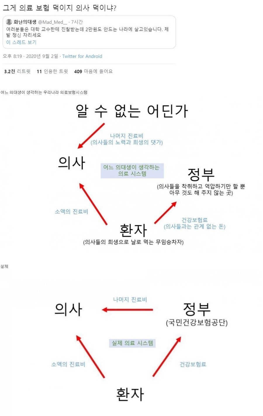 - 진짜로 의사가 먹고살기 힘들면 수능점수 1티어가 의대가 아니겠지