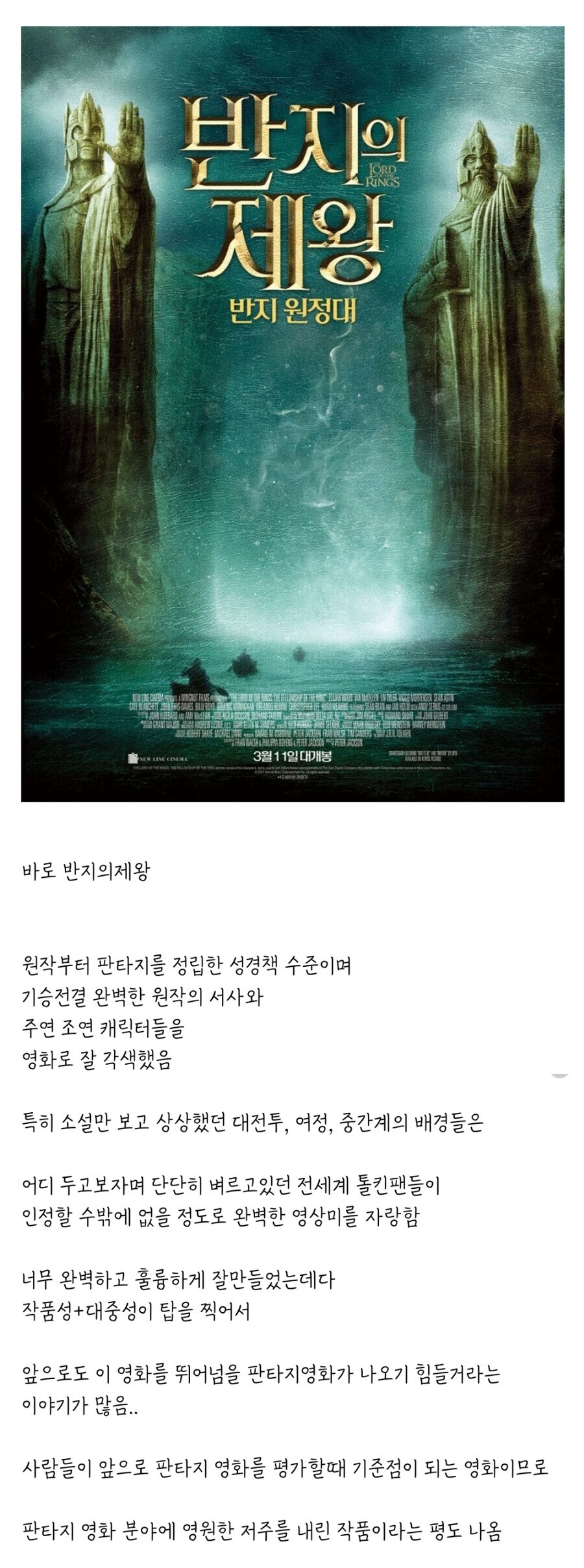 - 당시 영화보고 '아 판타지 영화면 의례 저 정도는 하는거구나.' 하고 생각했던 그때의 멍청한 나를 반성합니다