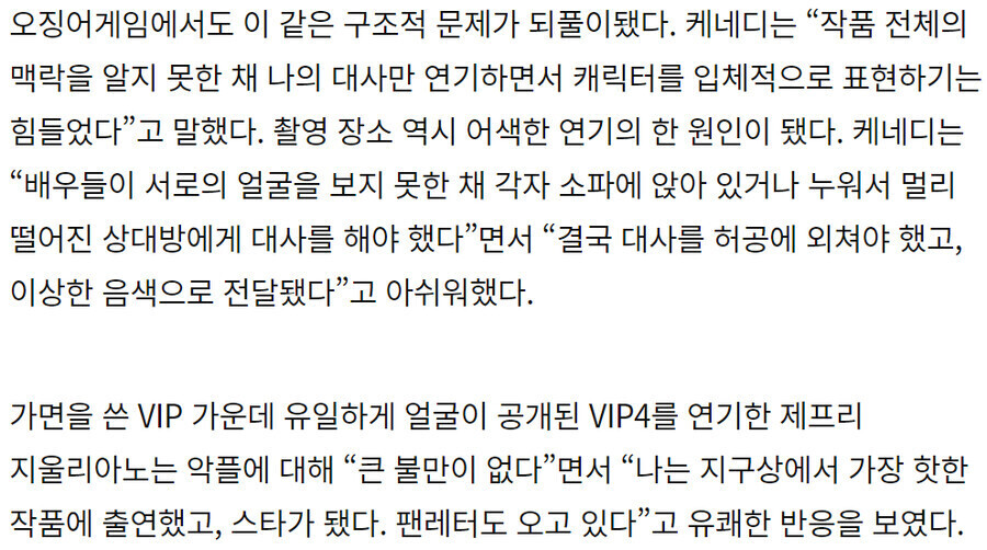- ㅇㅇ 맞음. 근데 이제 외국애들이 잘 보다가 vip등장 장면에서 팍 식는다고 하는 사람들이 많아서 그런듯