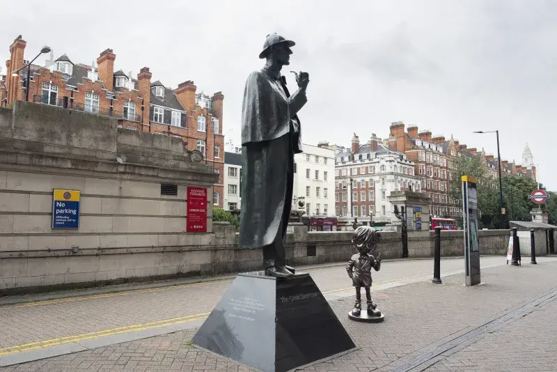 런던 홈즈 동상앞에 코난 동상 세움