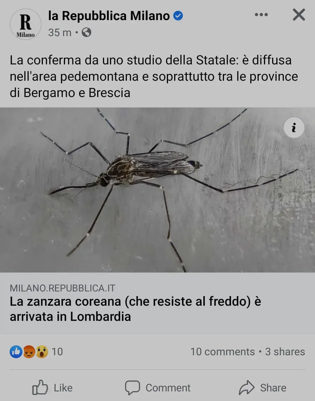 추위에 내성을 지닌 것으로 알려진 K-모기가 이탈리아 북부 롬바르디아에 상륙.
