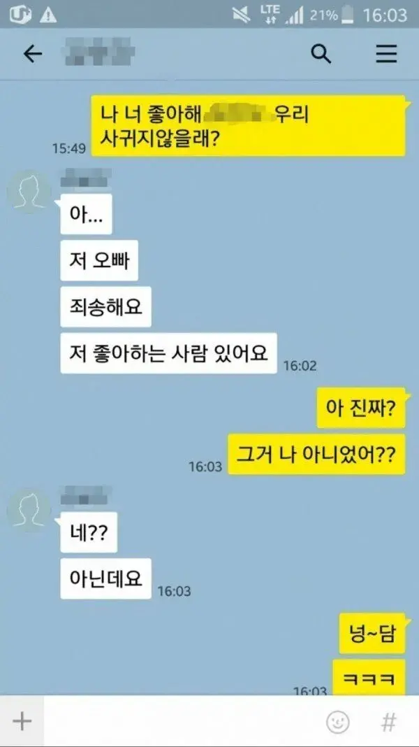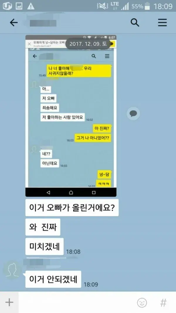 카톡고백 대참사