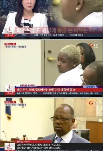 └ 점원의 실수로 베이컨이 빠졌고, 항의하는 여성에게 매장 측은 볼일을 보고 돌아오면 공짜로 햄버거를 다시 제공하겠다고 했다. 하지만 약속한 버거에도 베이컨이 빠져있었다. 결국 이 여성은 화를 참지 못하고 매장을 향해 총격을 가했다.