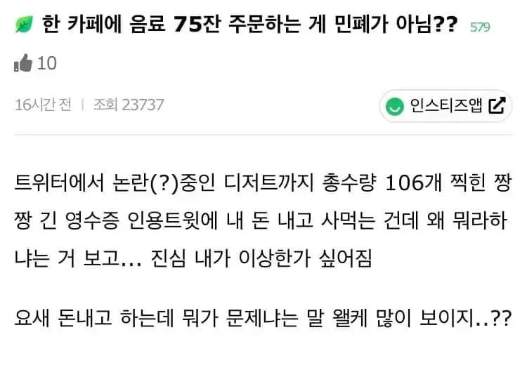 - 뭐라 하는 애들은 다 카페 알바생들인가보지 ㅋㅋㅋ 사장이 좋지 알바생이 좋진 않을거 아녀 ㅋㅋㅋ