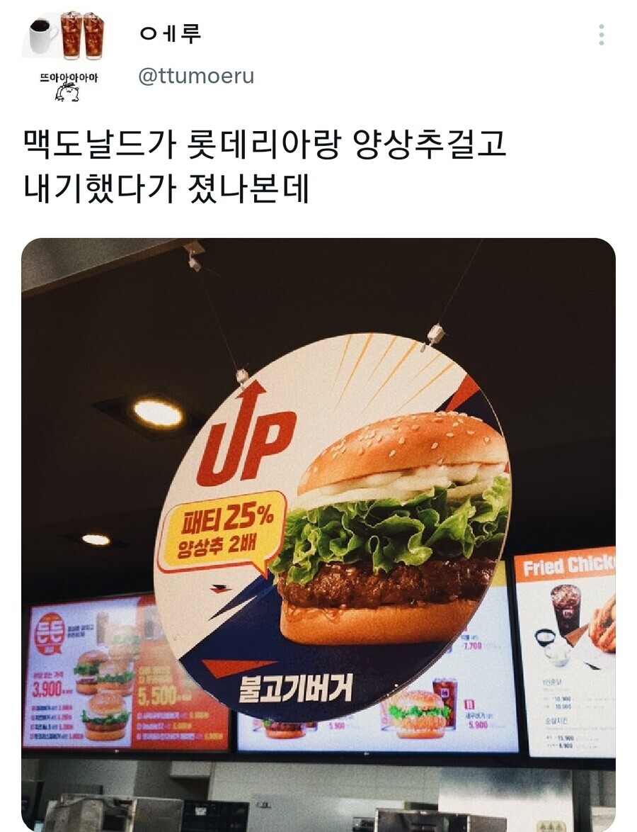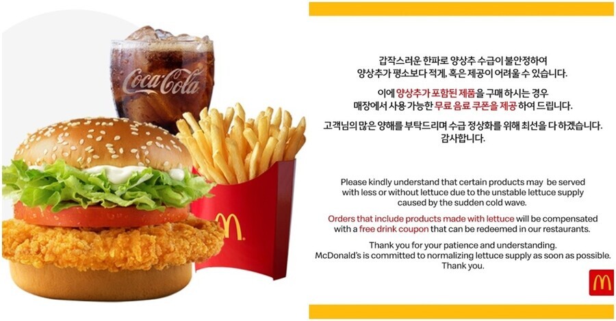 - 맥날은 그냥 기회봐서 뺀거 아닐까 양상추 값올랐으니 영업이익 손해 나니깐 롯데는 어차피 밭단위 계액해서 흉작나도 돈나가는건 똑같으니깐 걍 한거고