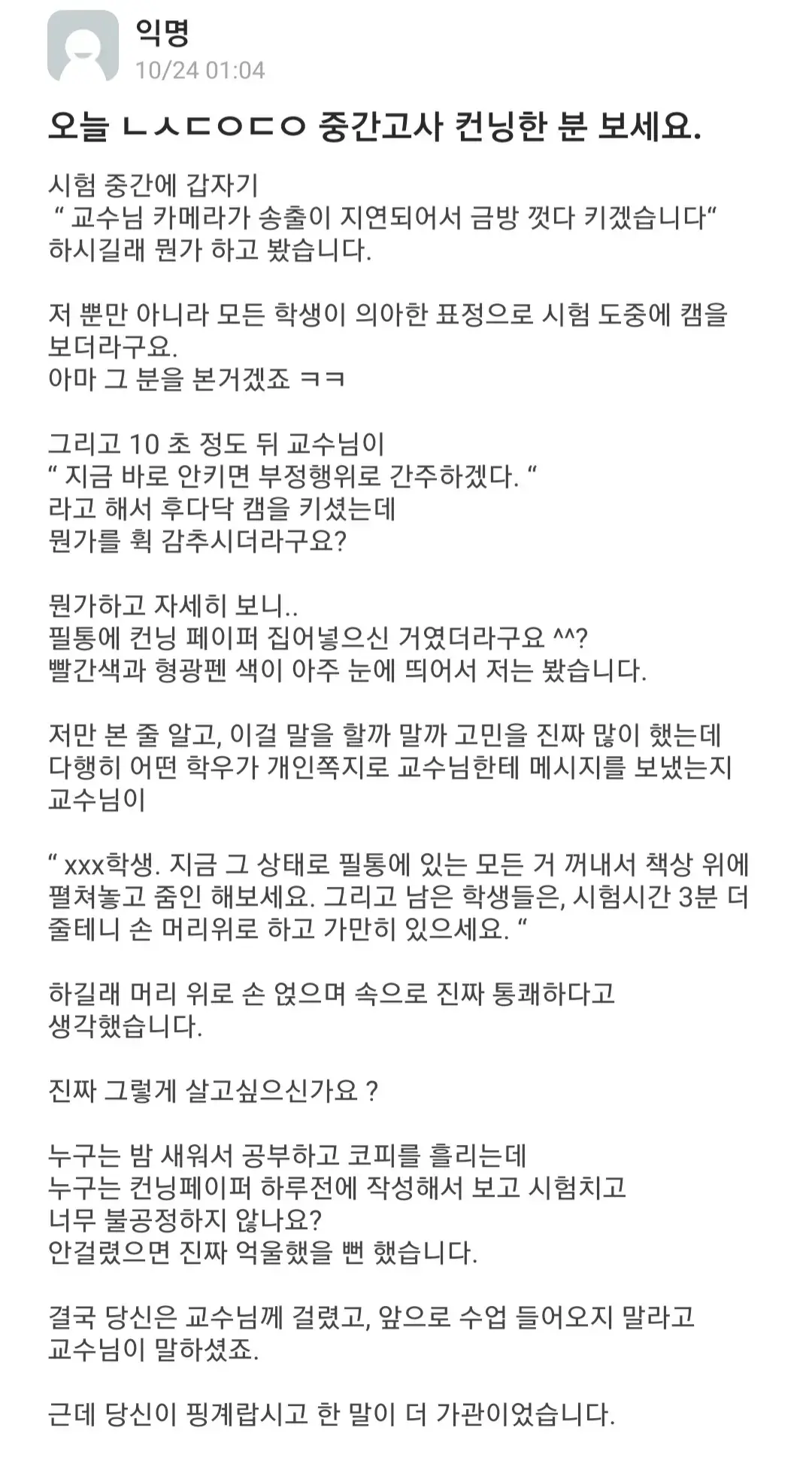 중간고사때 컨닝한 학생의 최후.everytime