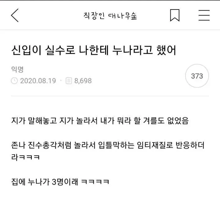 신입이 실수로 나한테 누나라고 했어.jpg