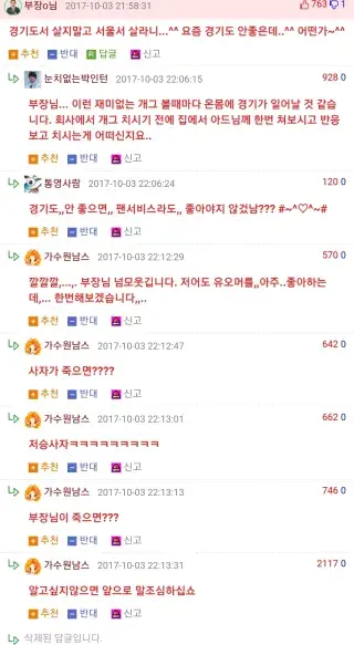 └ 어우 ㅋㅋㅋ 난 회식때 사장한테 "그딴식으로 살지말어요 어디가서 칼맞아요"이랬었는데 ㅋㅋ