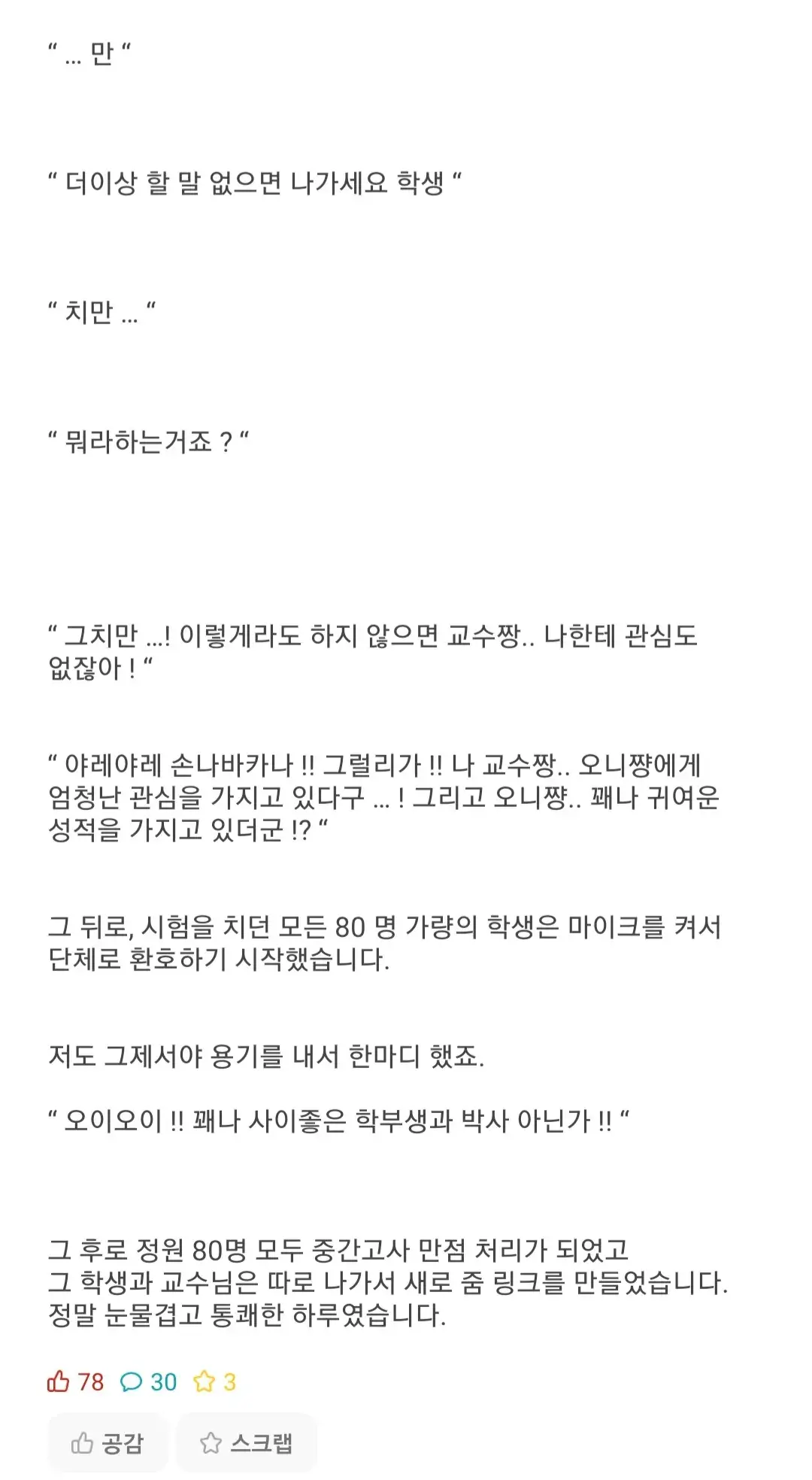- 컨닝페이퍼를 줌인 했더니 'ㅇㅇ교수, 내사랑...' 이라고 시작되는 연애편지였다는 설정도 좋을듯
