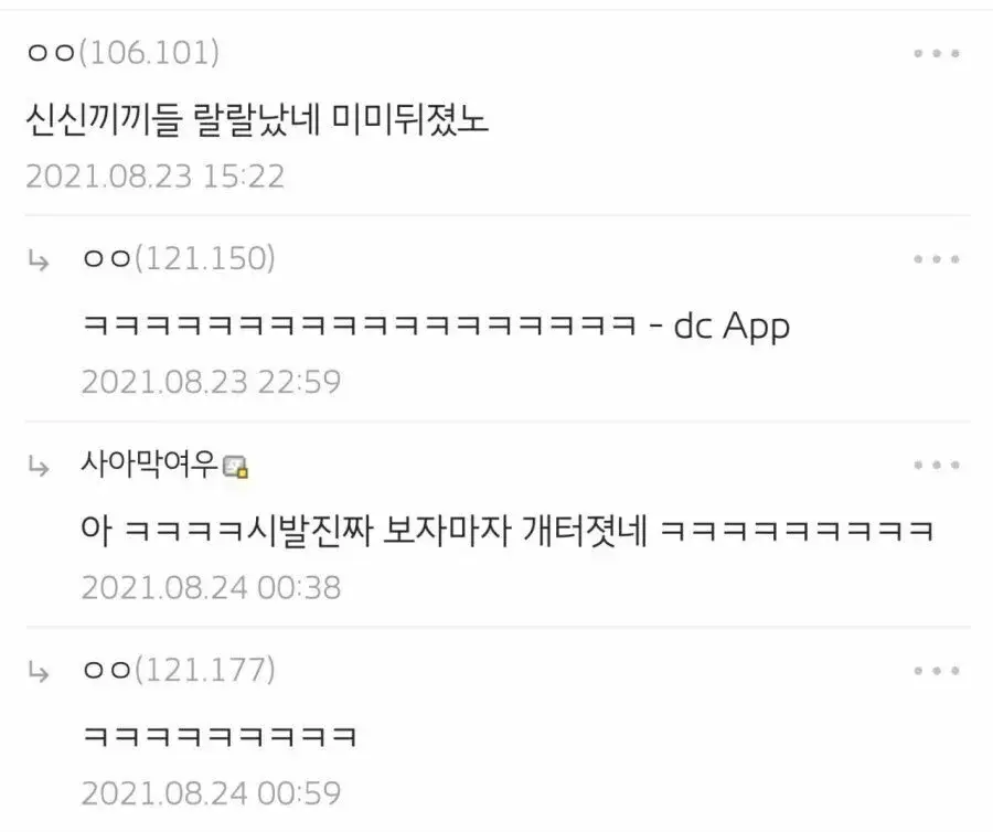 - 휴 나는 부장한테 씨1발새끼야 라고 한적 있는데, 다들 비슷한 경험이 있구나