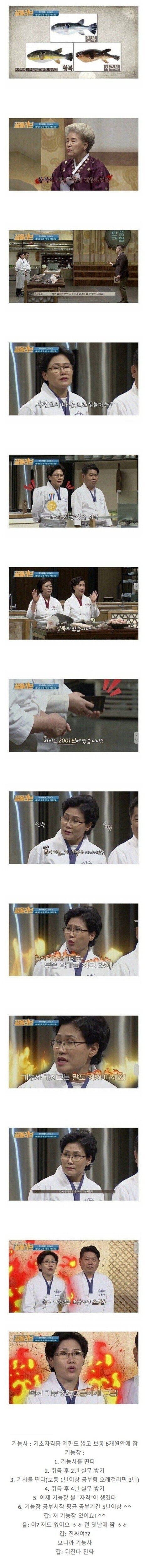- 솔직히 기능장 께서 복어 손질에 대해서 말씀중이신데 기능사 정도가 뒤에서 훈수질 하면 대가리 빠개져도 인정이지 ㅋㅋㅋㅋㅋㅋㅋ