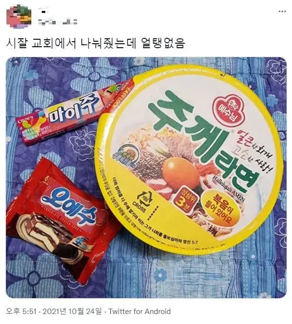 교회에서 나눠줬는데 얼탱없음...twt